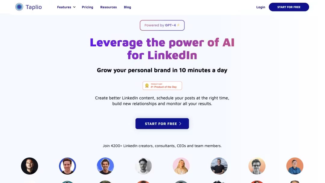 Over 4,200 LinkedIn creators and teams rely on Taplio to manage their personal brand and drive measurable results.