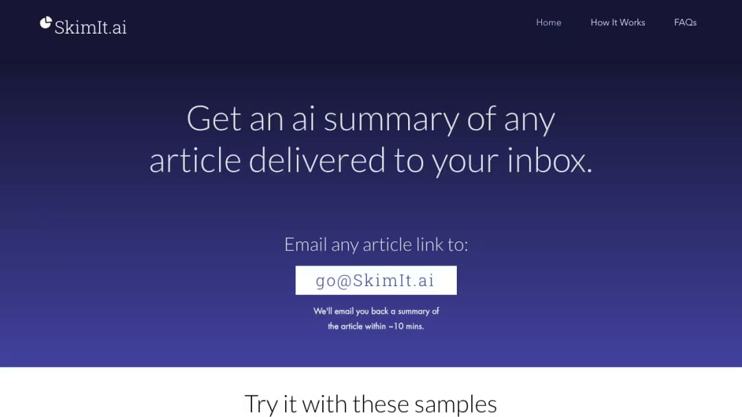 Skim It is an AI summarization tool that delivers concise article summaries straight to your inbox. But here's the twist: it also generates automated Tweets and LinkedIn posts based on the content.