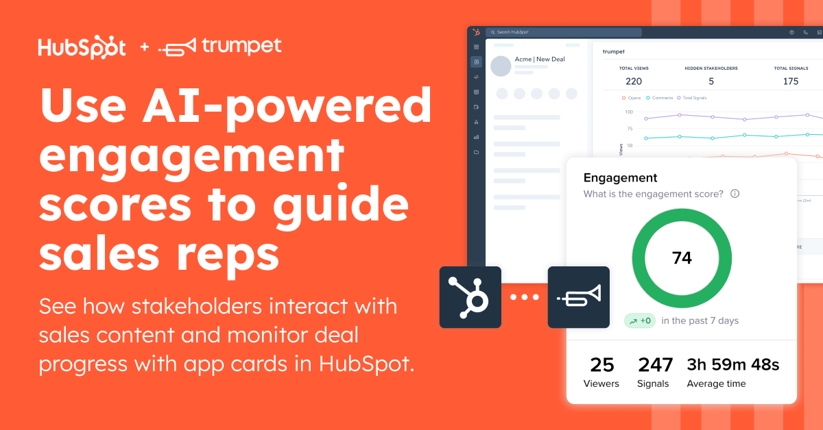Which deals will actually close? The improved trumpet app for HubSpot uses AI-powered engagement scoring to to predict deal outcomes based on real buyer behavior.